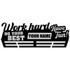 This Medal Hanger Display is made of 8mm acrylic material with the dimensions of 45cmW x 16cmH and is suitable for mounting on a wall or wooden surface, displaying your precious medals. Every medal we win is an important memory and deserves to be in a prominent place in our home.